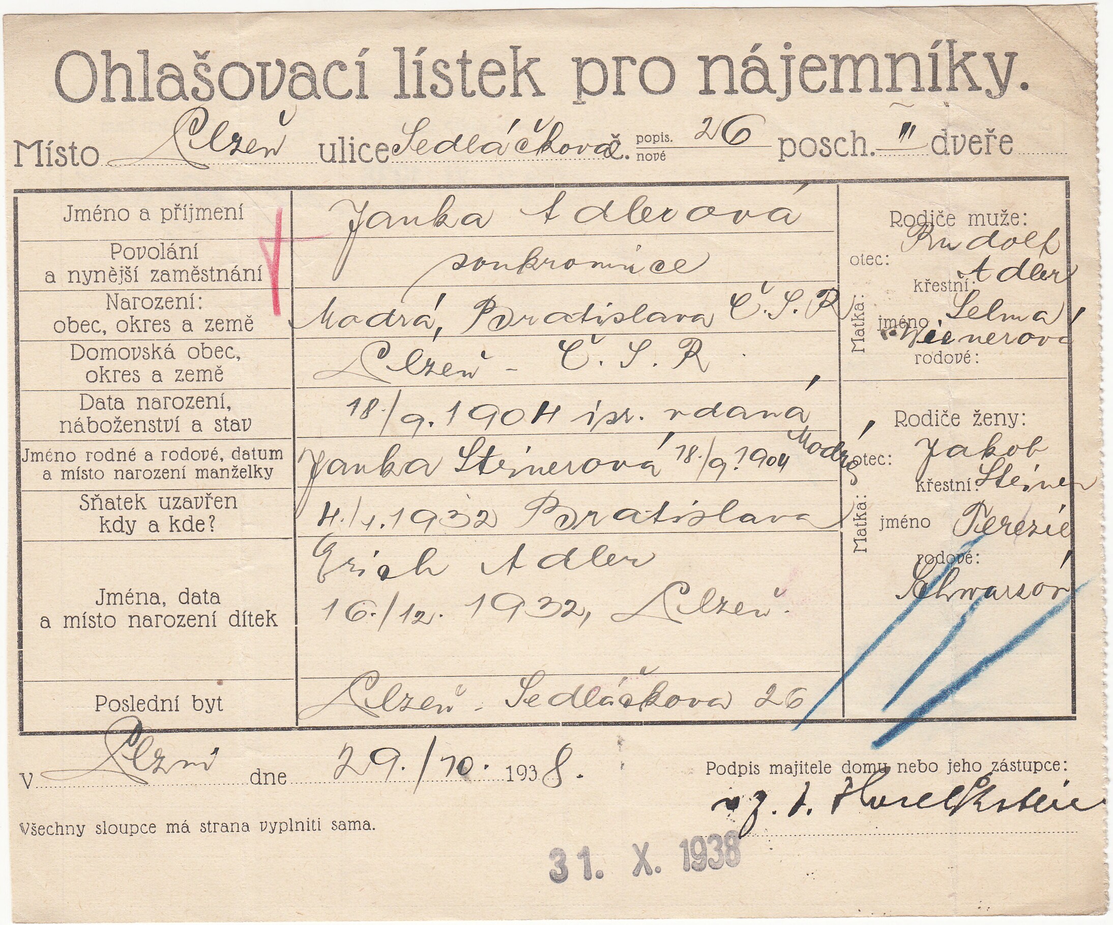 IdentifikátoryÚložištěArchiv: Plzeň (státní archiv) FondČíslo fondu: 10024Značka fondu: Policejní ředitelství PlzeňČíslo archivní pomůcky (inventáře): 24Elektronická archivní pomůcka: http://www.inventare.cz/soap-pn/ap0024 DokumentSignatura: ktt 265 Datace: 1938-10-29Místo: Plzeň