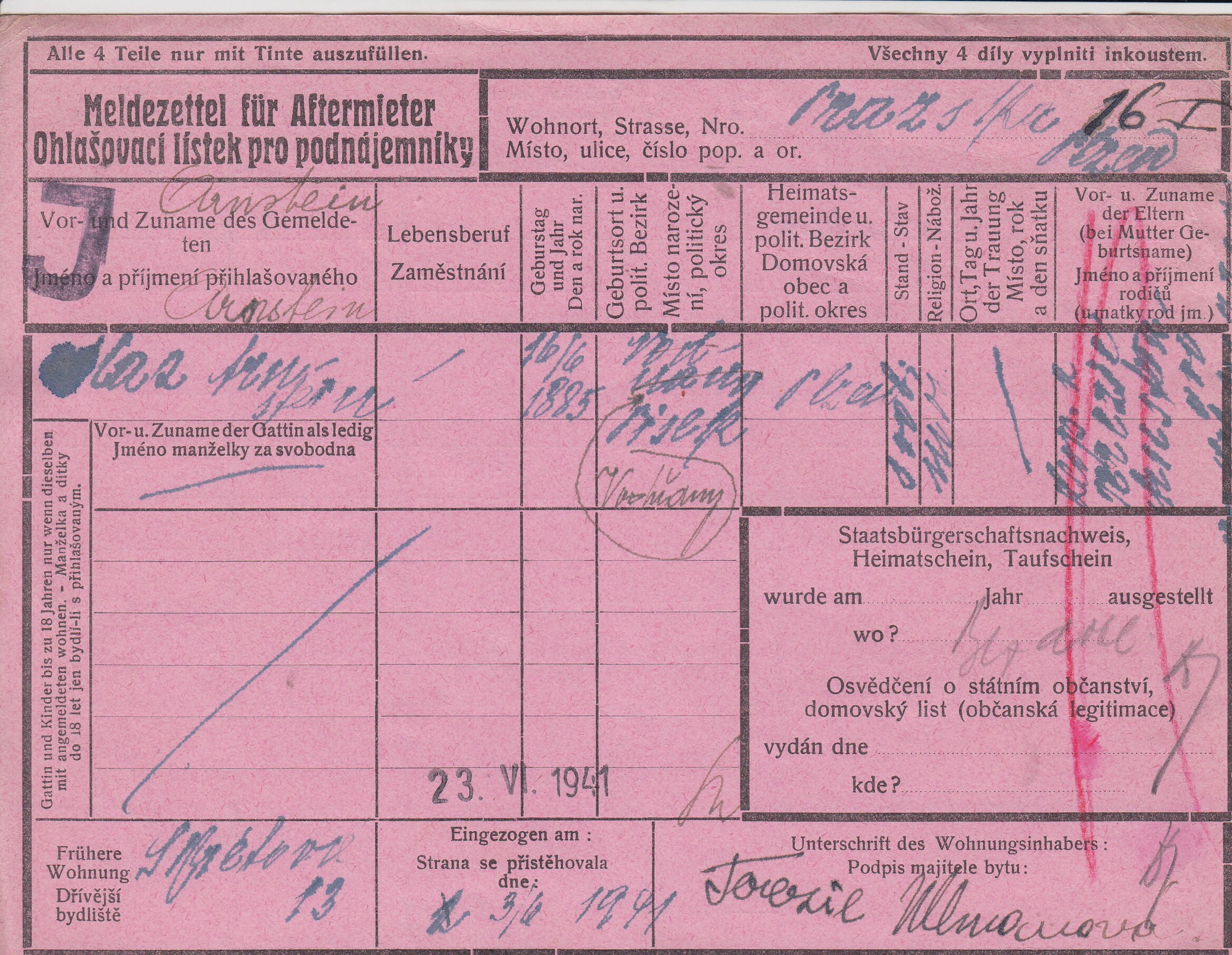 IdentifikátoryÚložištěArchiv: Plzeň (státní archiv) FondČíslo fondu: 10024Značka fondu: Policejní ředitelství PlzeňČíslo archivní pomůcky (inventáře): 24Elektronická archivní pomůcka: http://www.inventare.cz/soap-pn/ap0024 DokumentSignatura: ktt 269 Datace: 1941-06-03Místo: Plzeň