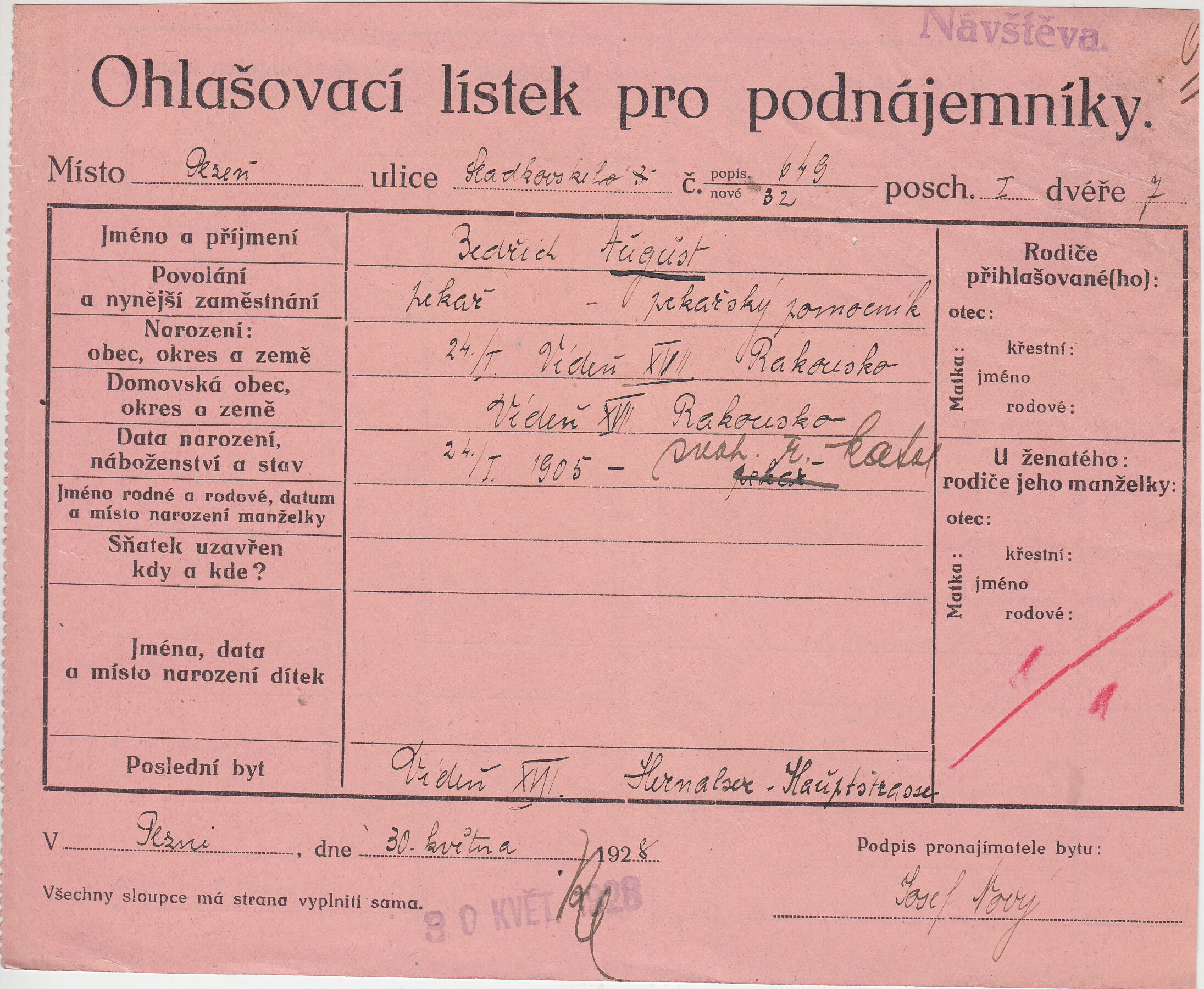 Plzeň (státní archiv) | August Bedřich (*1905) |